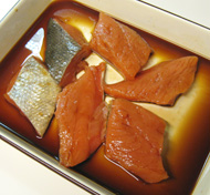 「秋鮭と豆腐のあんかけ揚げ出し」【材料】3人分*生鮭2切れ(骨を取り食べやすい大きさに切る)*日本酒、醤油、みりん各大さじ1*豆腐小さめ1丁*茄子1・1/2個*片栗粉*サラダ油適量(揚げ用)*水溶き片栗粉(大さじ1+水少々)*刻みネギ、せん切り大葉などお好みで適宜『あん』*ダシ汁200cc*みりん大さじ1*日本酒大さじ1*薄口醤油大さじ1*塩(粗塩)小さじ1/2【作り方】