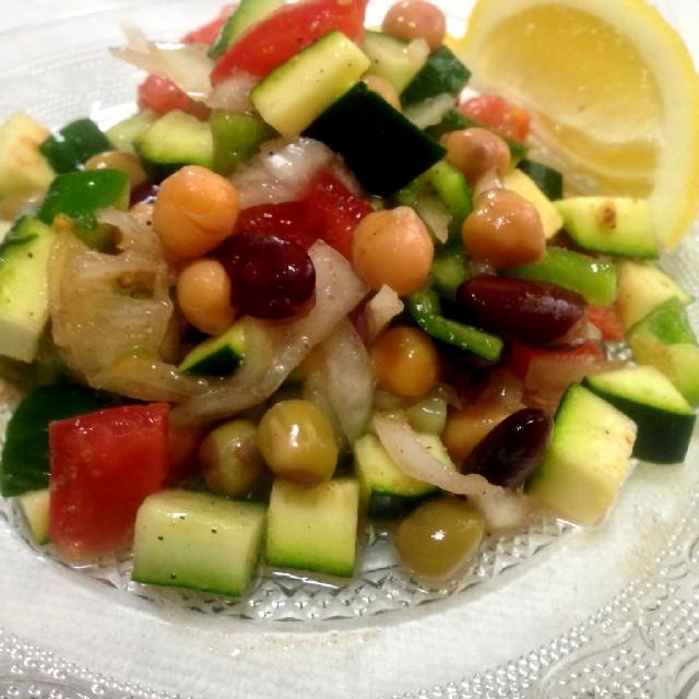 5月のインド料理教室の受講生K様の作品です。チャナ豆のサラダです。具は、玉ねぎ、ズッキーニ、ピーマン、レッドキドニー・マローファットピースも追加ですね。作りたてもいいのですが、私は時間が経過して少しだけしんなりしたものが好きです。おいしそうです!