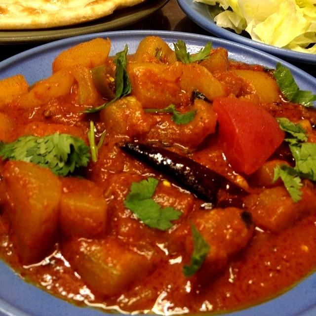 白うりのカレー。白うりは食材自体に強い主張はありませんが、逆に味がよくしみて、やさしい味に仕上がります。インドには、たくさんの種類の瓜があります。