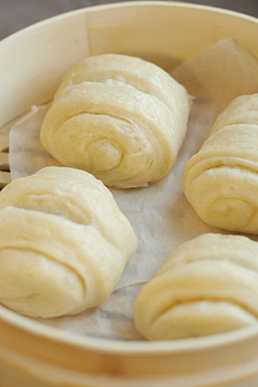 くるくるとした形がかわいい中華風蒸しパンです。そのまま食べるのはもちろん、具を挟んで中華風サンドにも!