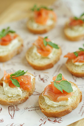 「わさびとクリチのディップとサーモンのブルスケッタ」