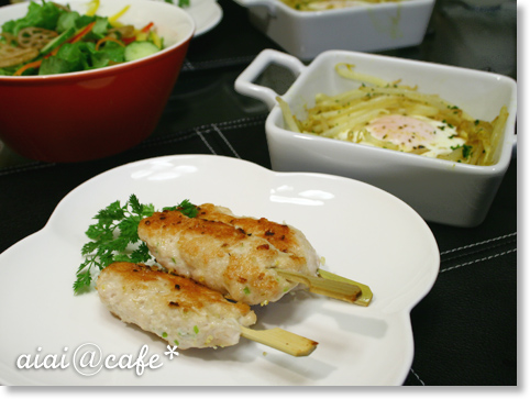 人気blogランキングに参加しています。 「鶏つくねの柚子風味焼き」【材料】3人分*鶏ミンチ250g程度*ネギみじん切り大さじ2*酒大さじ1*塩コショウ*片栗粉大さじ1*サラダ油大さじ1*柚子皮のすり下ろし又は乾燥柚子、柚子胡椒など適宜【作り方】1. 【種を作る】 ボウルにミンチを入れ、塩コショウ少々と酒を入れて ぐるぐると手で混ぜながら、粘りが出るまでよくこねる。 最後に片栗粉とネギを入れて更に混ぜ、人数分に等分する。 (今回は9等分でした) 手で竹串に細長く、握るようにしてくっつけておきます。2. 【焼く】 フライパンにサラダ油を熱し、つくねを焼きます。 軽く塩と柚子を振り、火が通ったらできあがり。 こねて焼くだけなので超簡単♪時間が無い時にもすぐにできちゃいます(^-^)あっ、時間が無くて手抜きな晩ご飯だった事がバレちゃいました?(笑)お引っ越しも山場に入って、この日はずっと出かけていて帰りが遅かったので、残り物や、パパ〜っとできるおかずが勢揃い(^-^;)つくねの他は、カレー風味のもやしソテーを巣ごもりたまごにしたものや、ブロッコリーにベシャメルソースをかけて焼いただけのグラタンなどなど。もうバタバタ〜っと嵐のような勢い(笑)自家製冷凍食材が大活躍でした♪ダーリン「ごちそうさま〜!」娘「ごちそうさま〜!」あぁホッとした(汗)人気blogランキングに参加しています。 ←_ρ( ̄  ̄*)ポチッ♪と一押し応援どうぞよろしくお願いします!