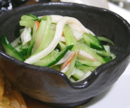 柚子胡椒和えは、千切りにしたキュウリとセロリ、ほぐしたカニカマをポン酢と柚子こしょうで和えただけ。柚子の香りがふんわりして良い箸休めになります♪今回はエビとレタスのエスニックソテーのレシピをご紹介しますね。レタスのシャキシャキ感と、トマトがさっぱり♪なんとなくナシゴレンやミーゴレンの味を連想する味です。人気blogランキングに参加しています。 「エビとレタスのエスニックソテー」【材料】2〜3人分*エビ1パック10〜12匹*レタス1/4個(一口大にちぎる)*トマト1/2個(さいの目切り)*にんにく小さじ1(みじん切り)*ピーナッツ油又はサラダ油大さじ1『合わせ調味料』*シーズニングソース小さじ2*ケチャップ大さじ1*醤油小さじ1*砂糖小さじ1*酒大さじ1*唐辛子1本(種を取って小さくちぎる)★シーズニングソースが無い場合は、オイスターソース小さじ1+水小さじ1で代用してください。★合わせ調味料は前もって混ぜ合わせておきます。【作り方】 1.【下ごしらえ】 エビは殻を剥いて塩を振り、ぬめりが出るまで揉んでさっと洗い流し、 背を開いて背わたを取っておきます。2.【炒める】 フライパンにサラダ油を熱し、ニンニクを炒める。 香りが立ったら周りが白っぽくなる程度にエビを炒める。 続けてレタスとトマトを加え、油が回ったら合わせ調味料をまわし入れる。 混ぜながら炒め、レタスがしんなりしてきたらできあがり。